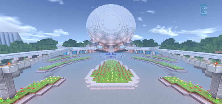 Canada: “From a Northwest Indian Village to a 19th century French chateau and the winding, narrow streets of Quebec City, the remarkable diversity of Canadian cultures and the awesome majesty of the wilderness are captured in the Canada pavilion.” Beautifully created in Minecraft, it features shops and the O’ Canada CircleVision film.